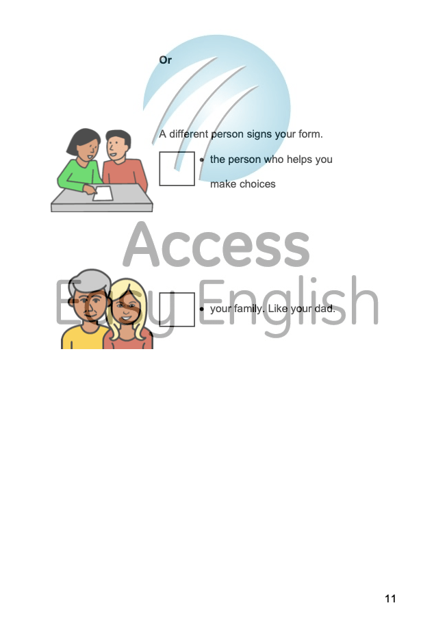 2. All images included by Access Easy English in our Ready-made series will have permission granted to use within each document, for any hard copy publication.